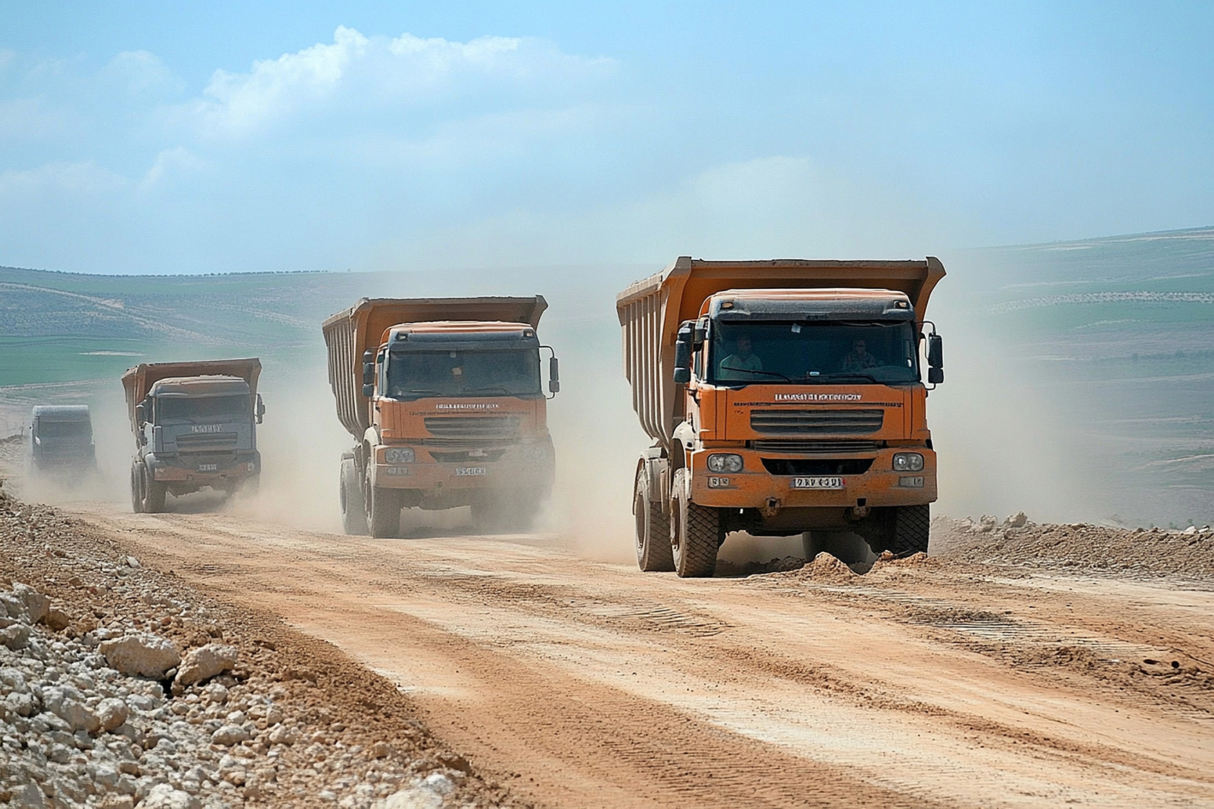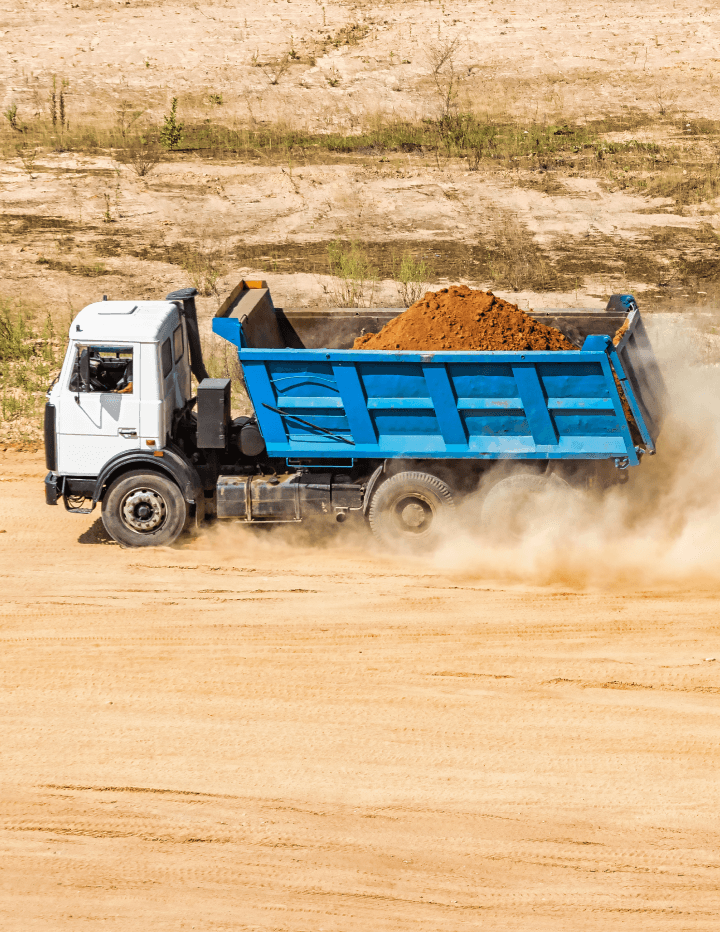 Transporte de areia, brita, terra e outros materiais, facilitando a logística.
